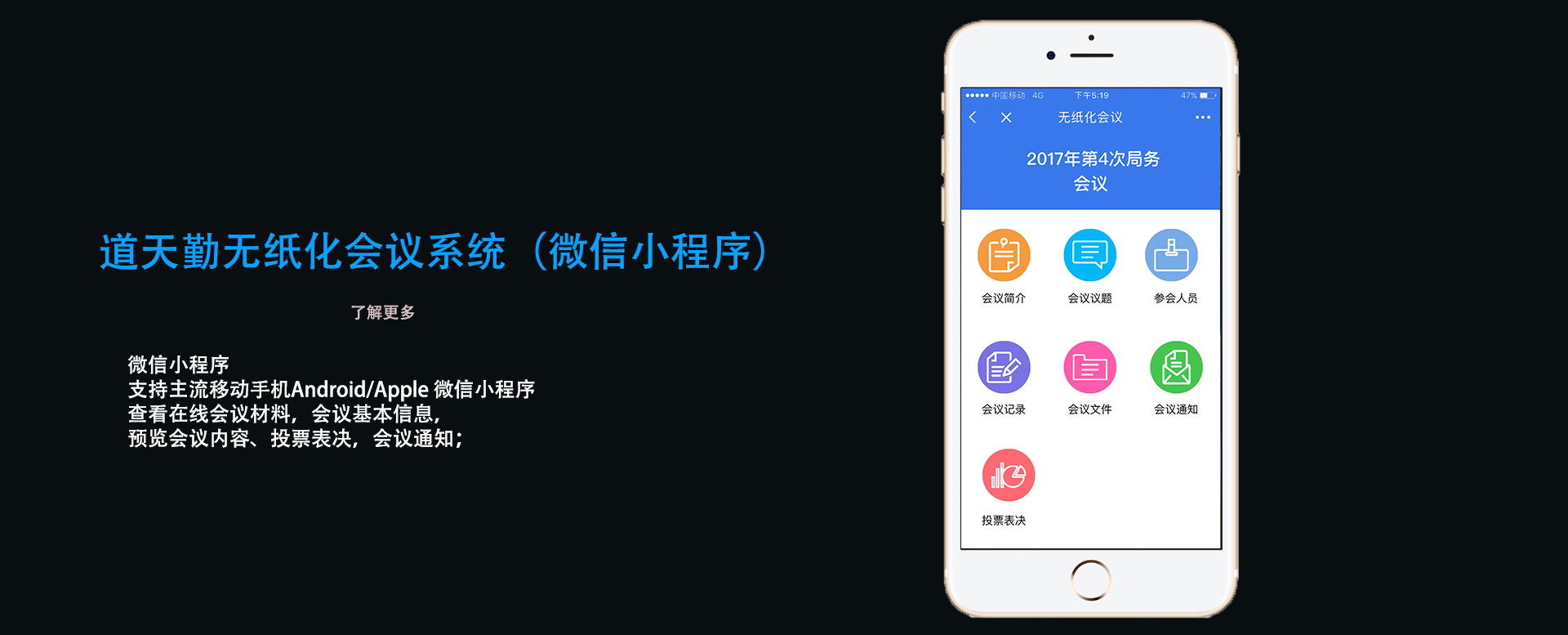 廣州道天勤科技有限公司是國內首家基于自主研發(fā)無紙化會議交互系統(tǒng)的高新技術企業(yè),以成熟的軟件研發(fā)技術與標準化的流程方法自主開發(fā)—套具備跨平臺功能的無紙化會議交互系統(tǒng),領先于傳統(tǒng)行業(yè)的創(chuàng)新能力和資源整合能力。技術分工明確,由需求調研組、架構設計組、美工設計組、程序開發(fā)組、軟件測試組、技術服務組、研發(fā)管理部門進行設計研發(fā)流程。道天勤以標準化的產品進行研發(fā)生產,統(tǒng)—的業(yè)務流程進行資源管理。道天勤秉承 “道法自然“ 哲學理念,利用目前現(xiàn)有的創(chuàng)新技術,自主研發(fā)一套獨特的無紙化會議交互系統(tǒng)。三大企業(yè)優(yōu)勢:1、首家基于移動互聯(lián)網技術無紙化會議系統(tǒng)的高新技術企業(yè)2、首家研發(fā)移動平板無紙化會議軟件、升降觸摸終端、會議預定管理、集中控制管理功能的會議系統(tǒng)研發(fā)企業(yè)3、首家具備無紙化會議系統(tǒng)最專業(yè)的開發(fā)團隊和強大的研發(fā)定制能力三大核心技術:1 、首創(chuàng)DTQ同屏演示利用觸屏軌跡跟蹤和觸屏軌跡仿真技術,支持上百客戶端同時并發(fā),且理論延時<100ms 2 、首創(chuàng)無紙化會議系統(tǒng)同步備份機制以及DTQ